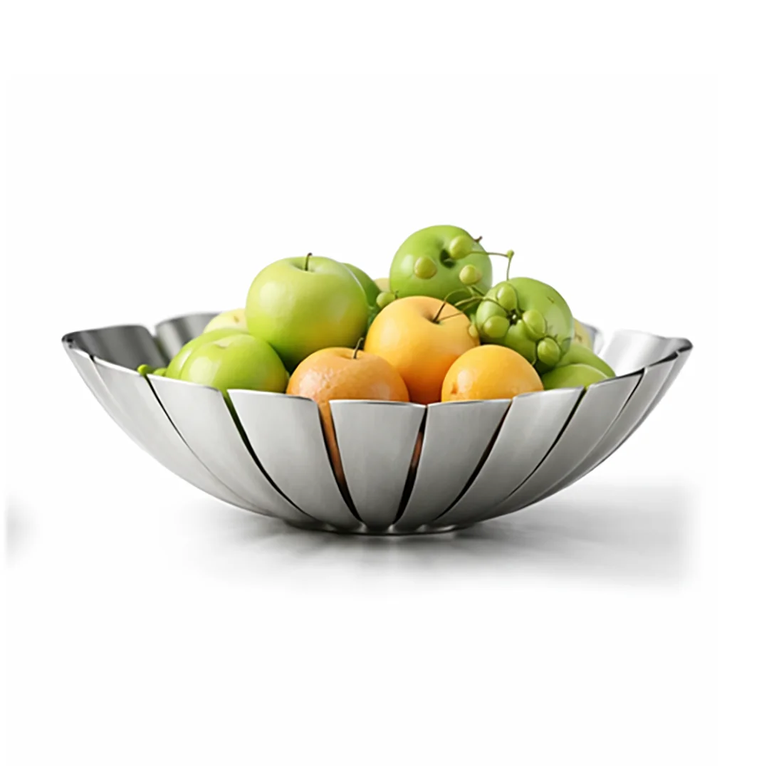 Dekoratif Paslanmaz Çelik Meyvelik, modern formu ve yalın çizgileriyle mutfak ve masa üstü dekorasyonuna şıklık katan fonksiyonel bir tasarım ürünüdür.