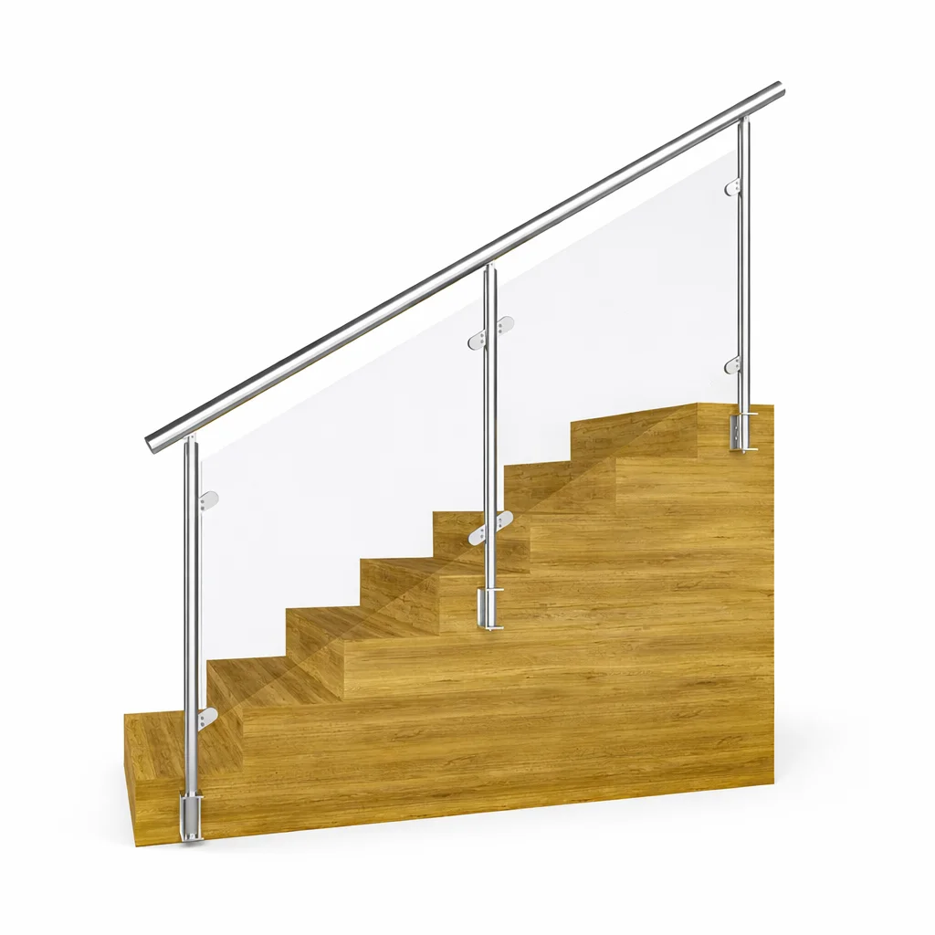 Ahşap, beton veya mermer merdivenlerle uyumlu olan bu sistem, iç mekânlarda ferah bir görünüm yaratır. Cam paneller sayesinde görüş alanı kapanmaz, mekân daha geniş ve aydınlık algılanır. Üst küpeşte borusu, kullanım konforunu artırırken korkuluğa sağlamlık kazandırır.