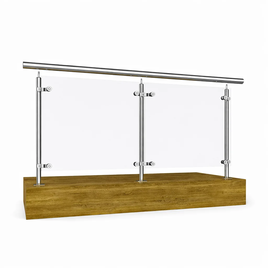 Özel spider bağlantıları camı güçlü şekilde taşırken, üst küpeşte ile sistem güvenliği ve kullanım konforu artırılır. Ahşap, beton veya çelik zeminlere uyum sağlayan bu sistem; balkon, teras ve galeri boşluklarında estetik bir bütünlük oluşturur.